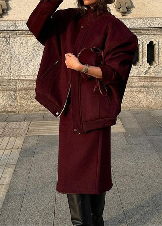 Chic Wool-Blend Buttoned Coat with Stand Collar