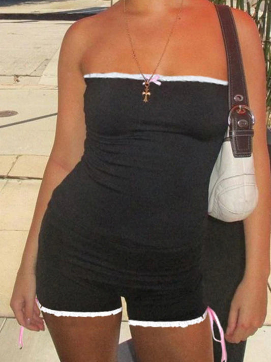 Mono ajustado sin tirantes con lazo en contraste para mujer