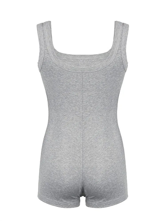 Monos ajustados sexis con cuello cuadrado y sin mangas para mujer