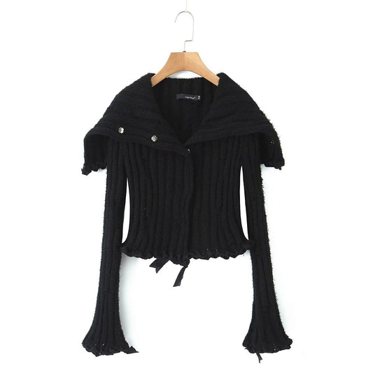 Suéter corto informal con giro para otoño e invierno, falda a la cadera, traje de punto, ropa para mujer