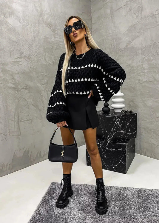 Off-Shoulder Cropped Knit Sweater – Minimalist Elegance