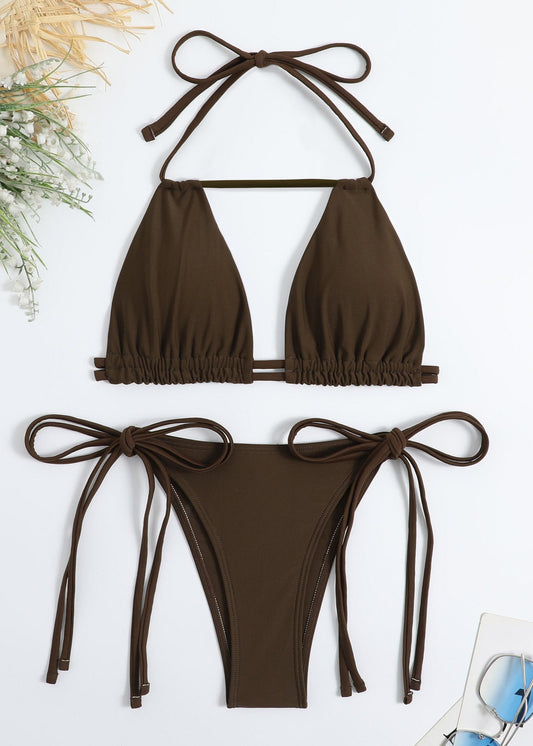 Mocha Strings - Minimalist Triangle One Piece Swimsuit
