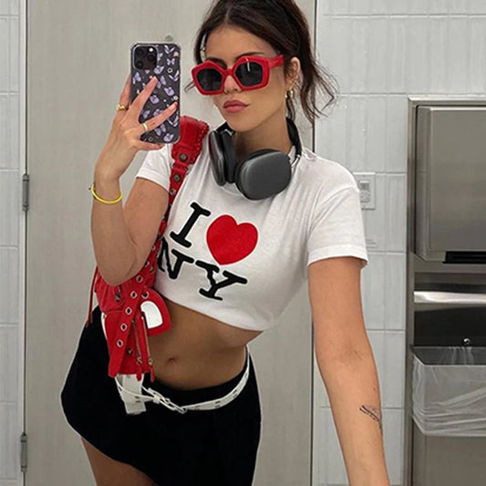 Camiseta estampada Y2K, nueva camiseta informal de moda de manga corta, top corto de verano, camiseta electrónica sexy para chica, ropa para mujer