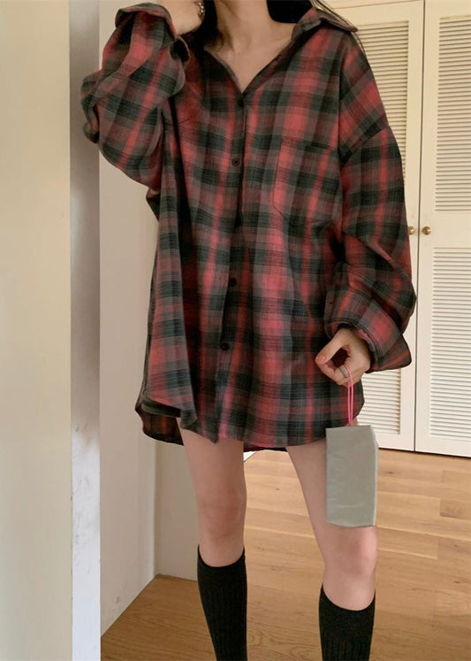 Vintage Plaid Oversized Shirt – Relaxed American-Korean Fusion Style