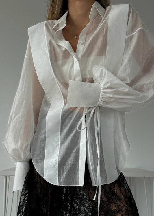 Rosette – Oversized Shirt with Ribbon-Tie Puff Sleeves