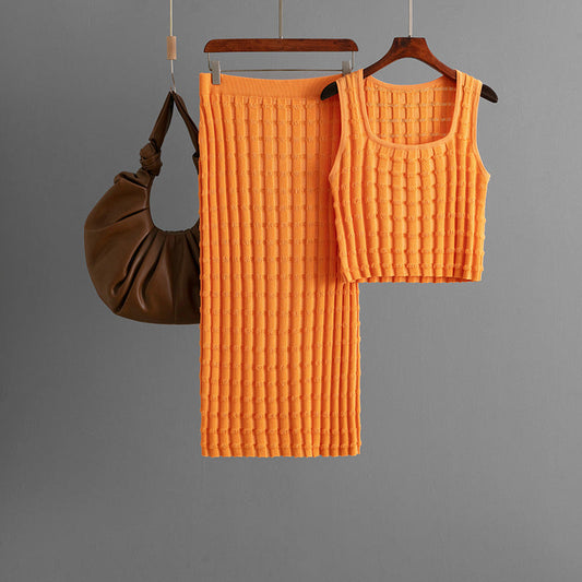 Chaleco sin mangas de verano para mujer, falda superior de punto de dos piezas
