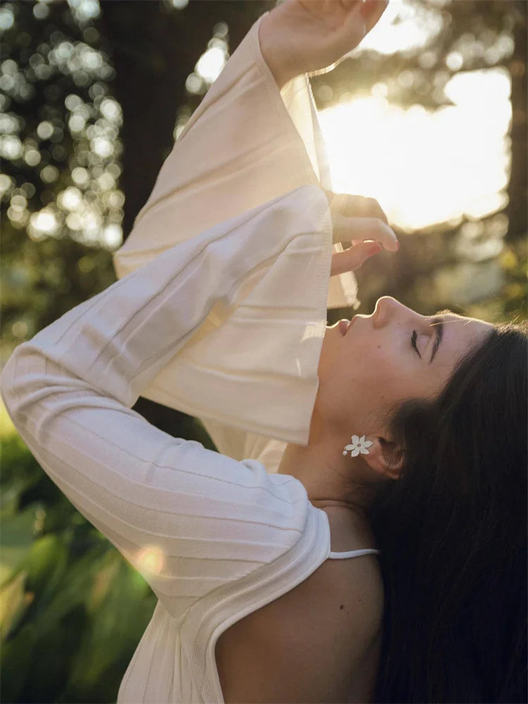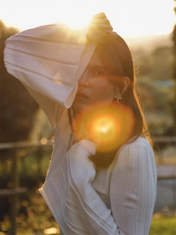 Vestido largo informal de otoño sin espalda para mujer, de punto, con cordones y retazos, ajustado, sexy, de cintura alta, de punto blanco
