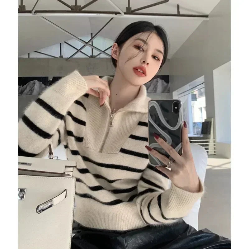 Suéteres de punto para mujer, suéteres holgados con cremallera, camisas y blusas de manga larga, ropa de punto de la tienda Traf