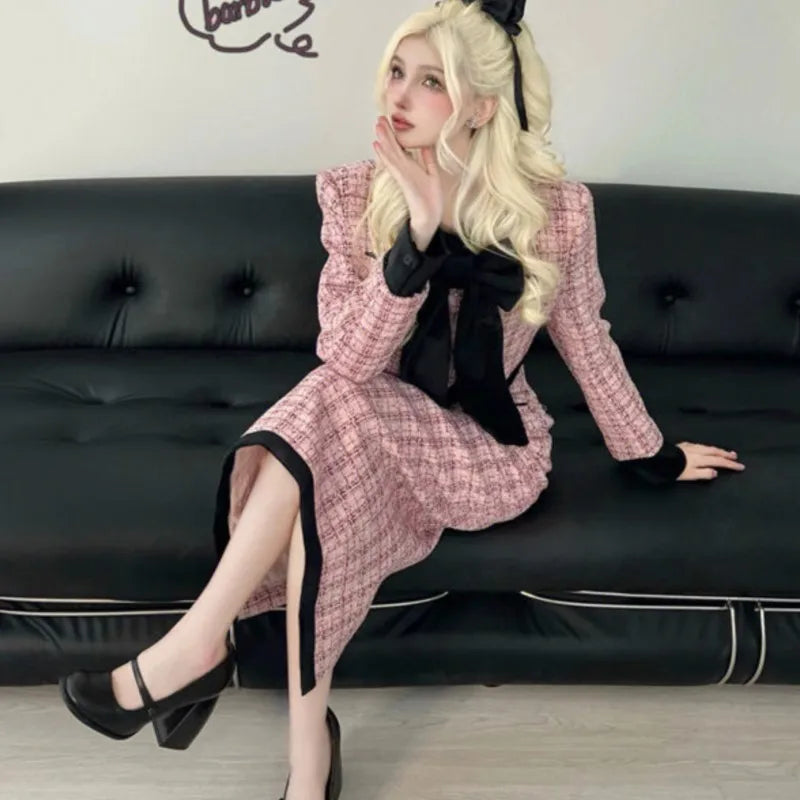 Conjunto de dos piezas elegante de moda coreana para otoño e invierno, chaqueta corta, abrigo, falda midi de cintura alta, conjuntos de lujo.