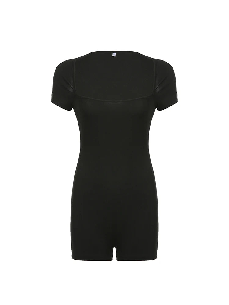 Mono ajustado de manga corta con cuello cuadrado y espalda descubierta para mujer