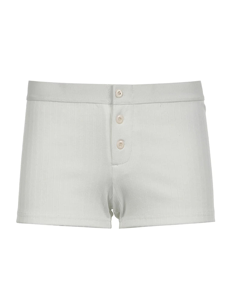 Pantalones cortos básicos de verano ajustados con cintura baja y botones para mujer