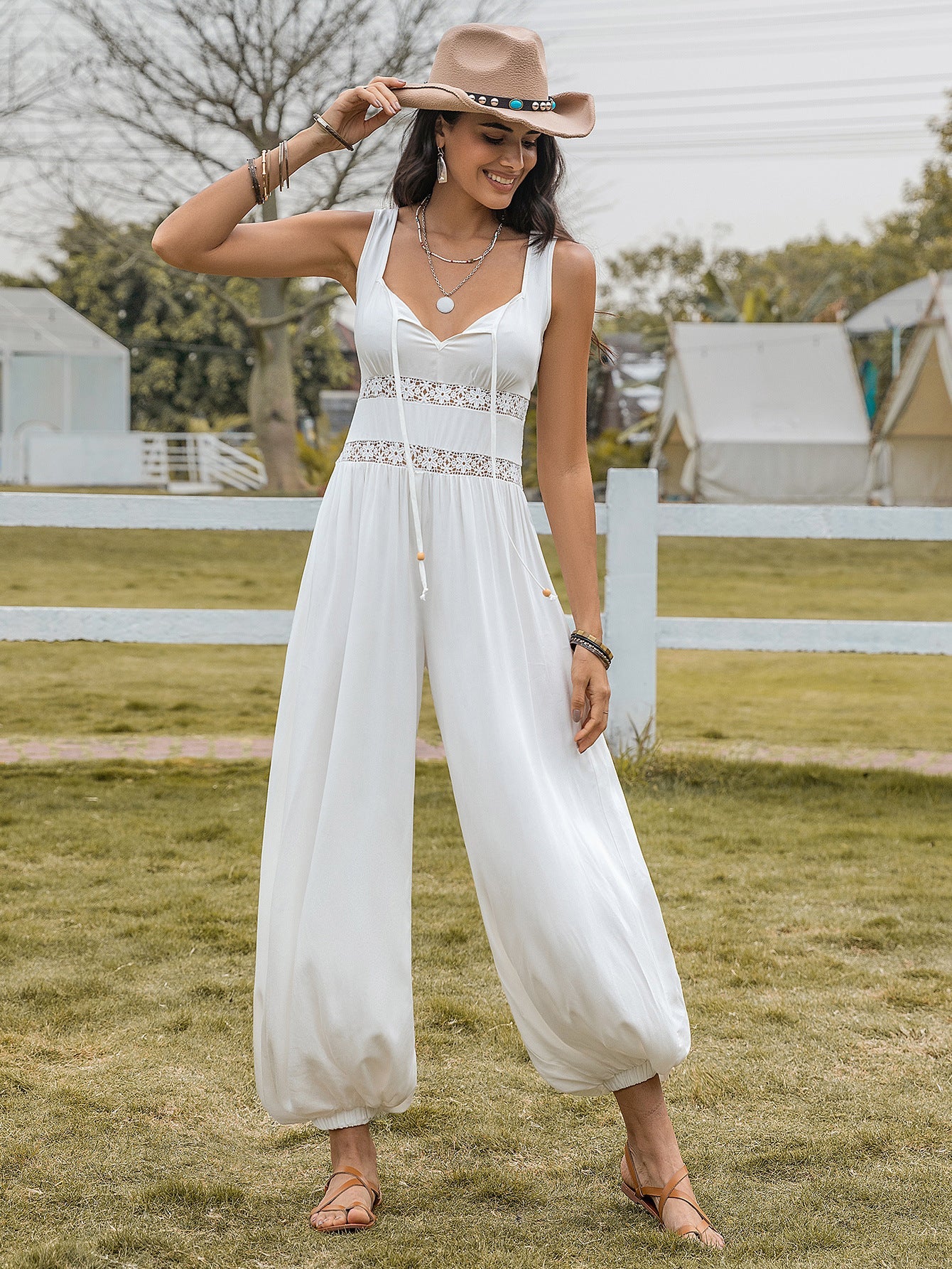 Monos sexys de cintura alta con aberturas y tirantes finos y cordón ajustable para mujer