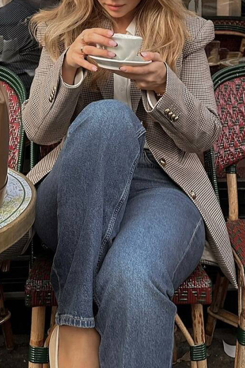 Prendas de abrigo informales con cuello vuelto, botones y patchwork en contraste a cuadros