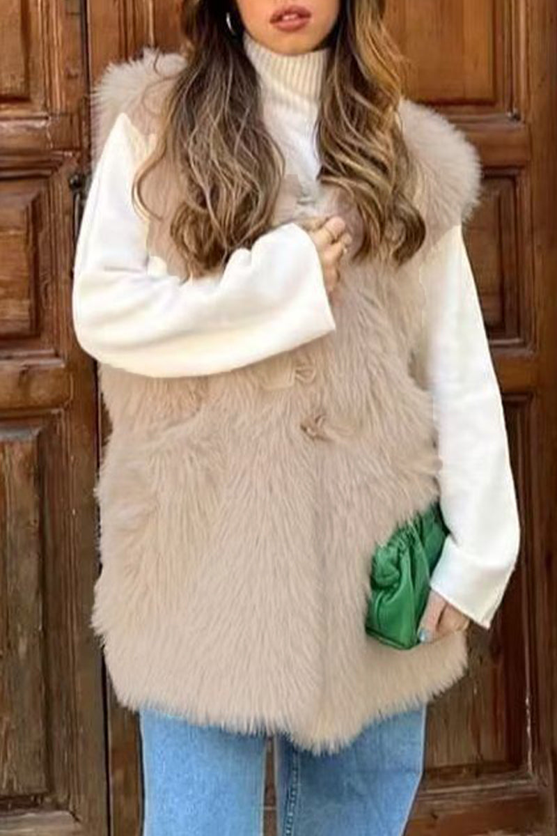 Tops casuales sencillos con cuello en V, botones y bolsillos lisos