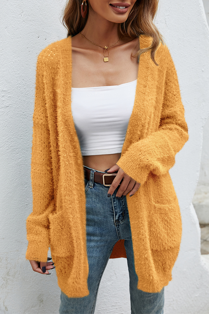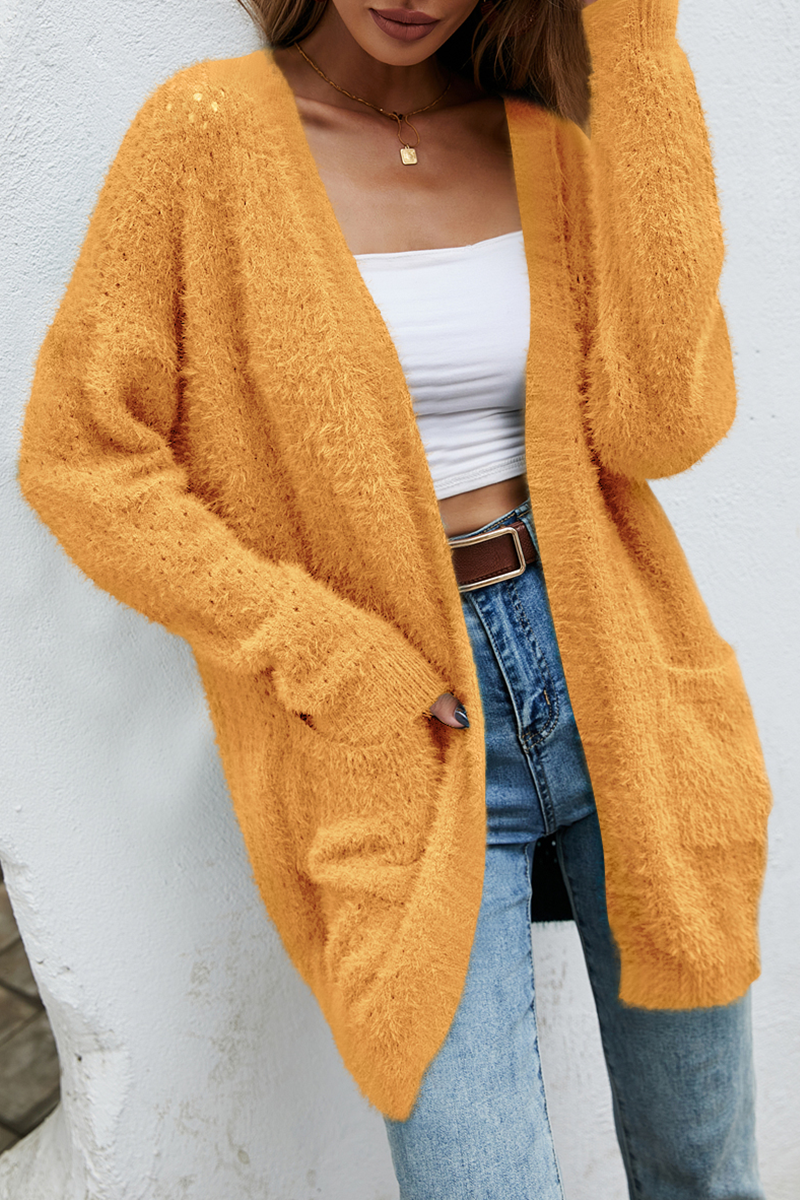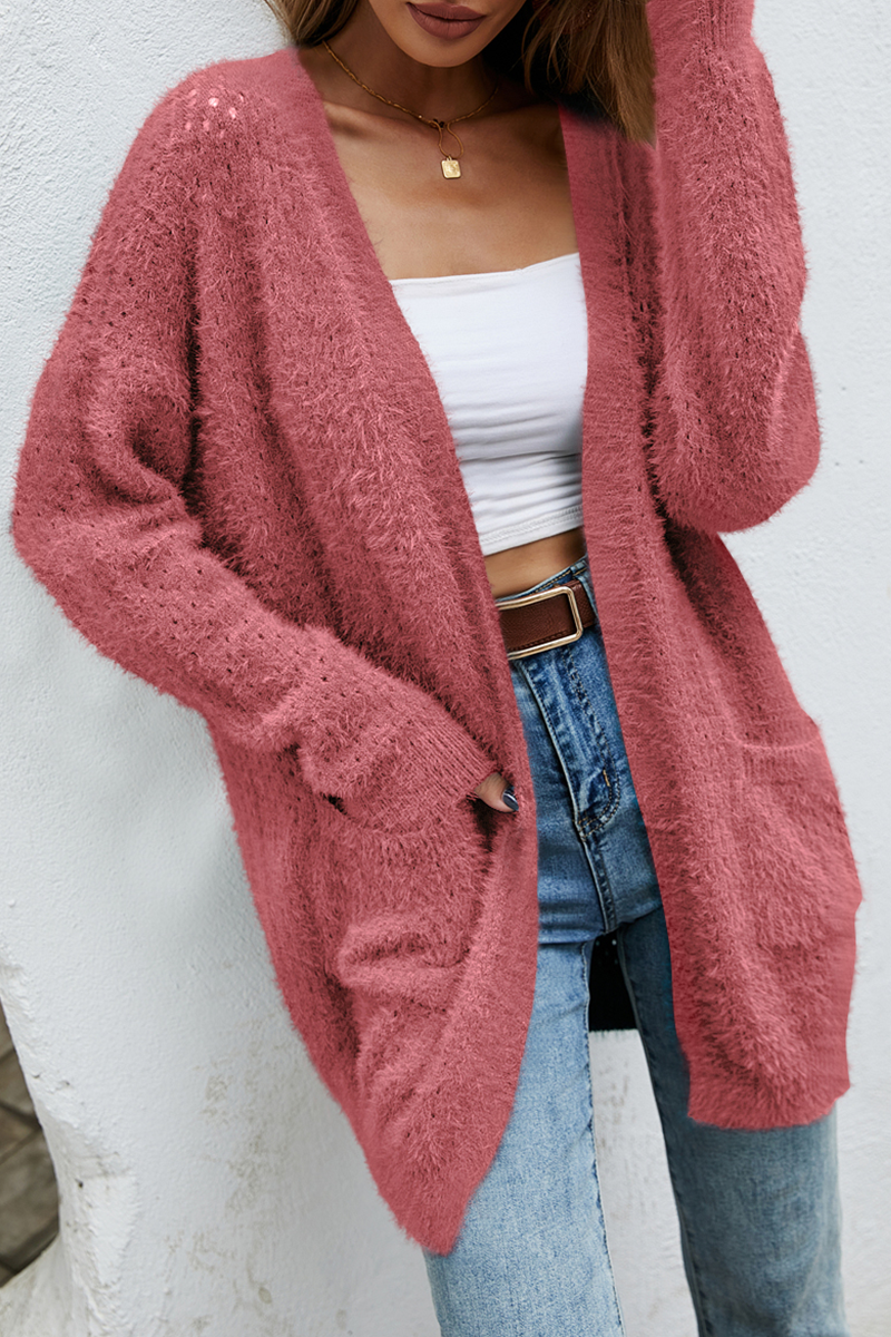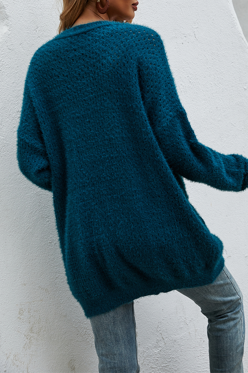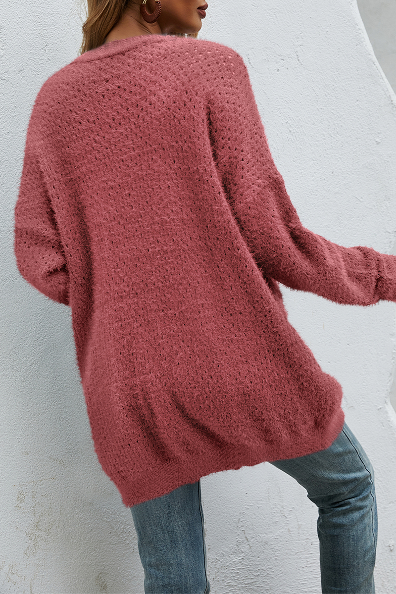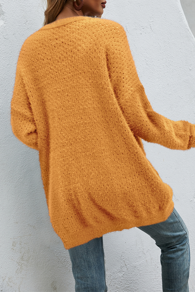 Suéter casual con bolsillos y parches sólidos