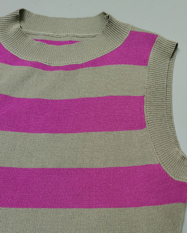 Contrast Striped Crew Neck Sleeveless Vintage Sweater