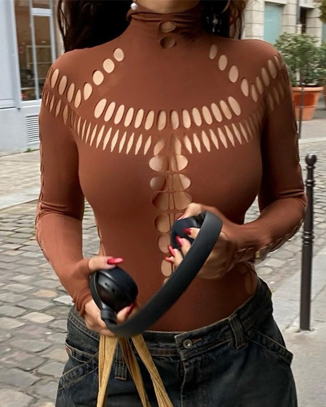 Dark Cyber Y2k Punk long-sleeved tights with unique hollow design, sexy and fashionable.