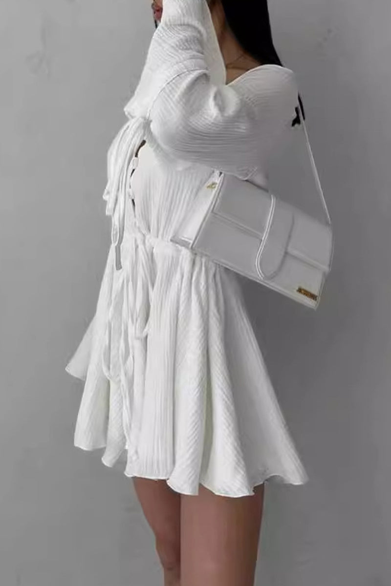 Mono elegante de color liso con cuello en V y frenillo con cordón ajustable