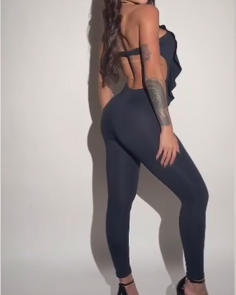 Halter Neck Lace-Up Slim-Fit Jumpsuit