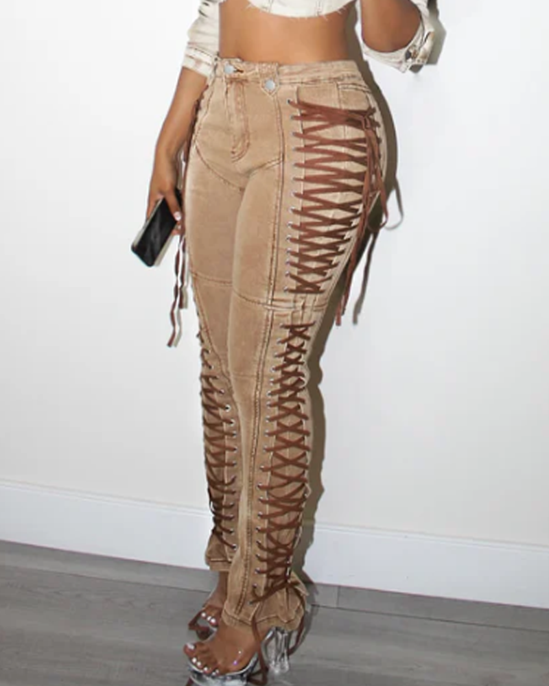 High-Waisted Tie-Strap Jeans