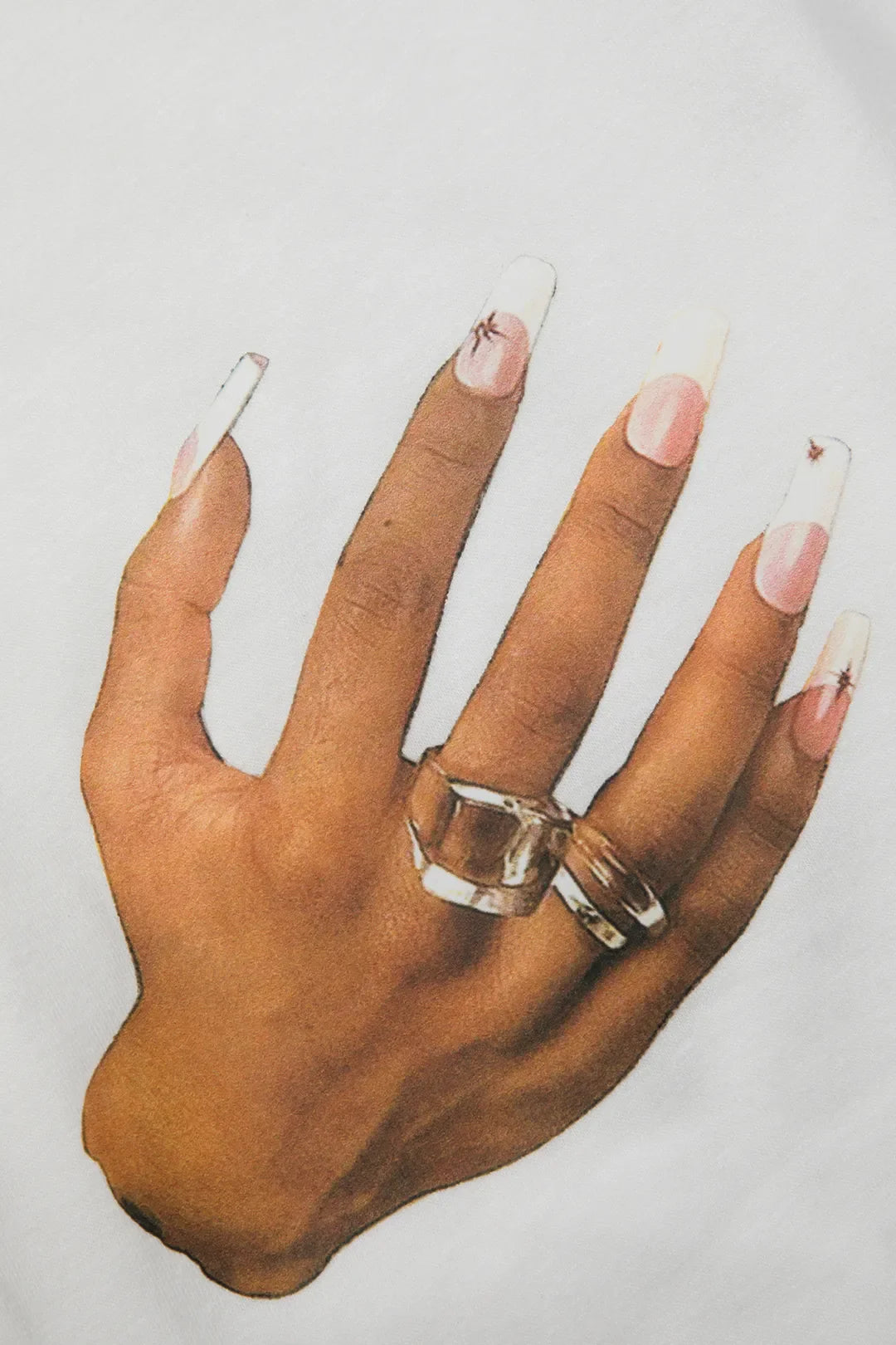 Lalipa White Hands Printed Round Neck Crop T-shirt