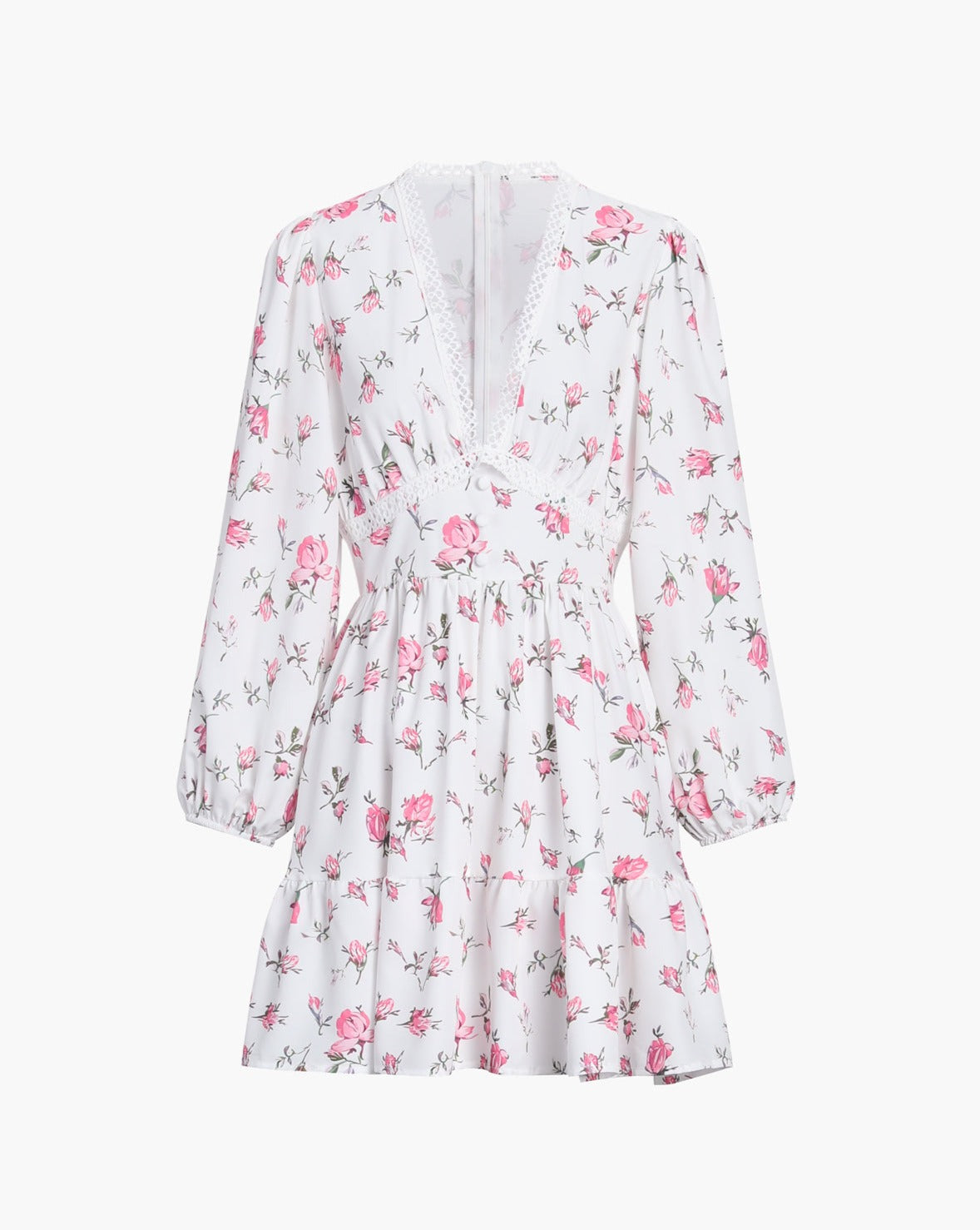 Multi Floral Lace Trim Short Dress