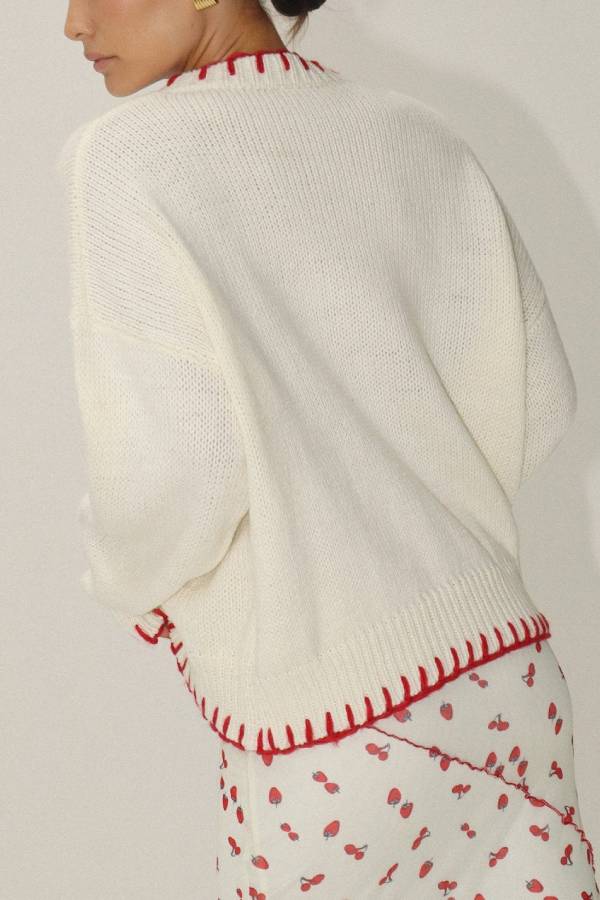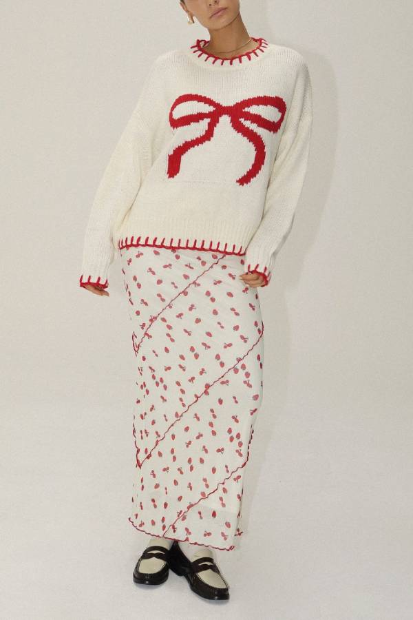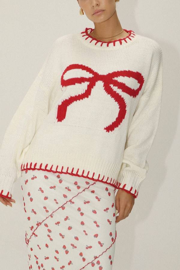 Descubre el suéter de lazo de corte relajado: ¡una prenda imprescindible y acogedora con un toque divertido! Con su corte holgado y relajado y sus adorables detalles de lazo, este suéter es sinónimo de estilo desenfadado. El detalle de costura en el dobladillo le da el toque perfecto de estilo, ideal para cuando quieres sentirte guapa sin esforzarte demasiado.