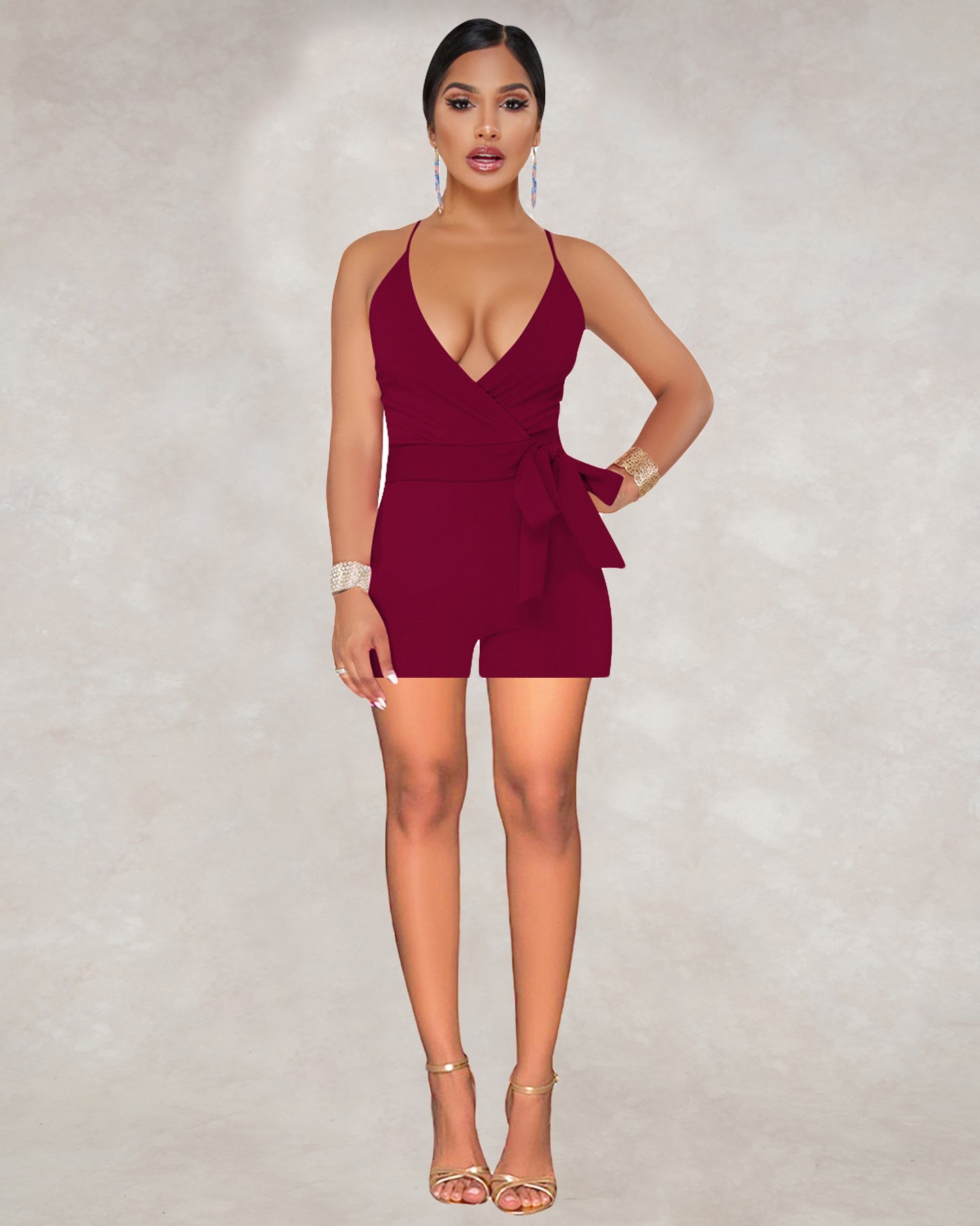 Mono sexy con escote en V profundo
