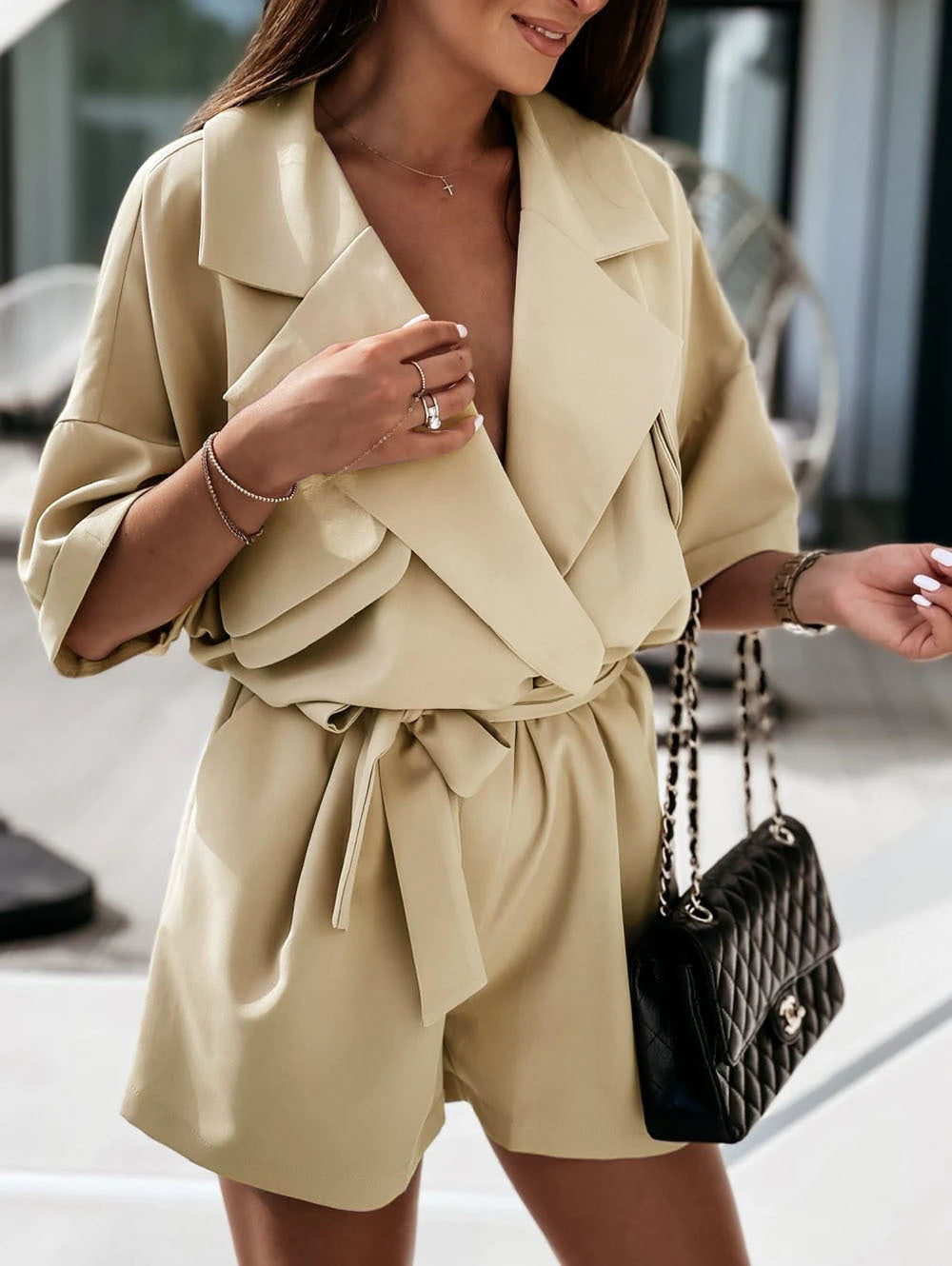 Mono de verano para mujer, sexy, con cuello y mangas murciélago, tres colores y cuatro tallas.