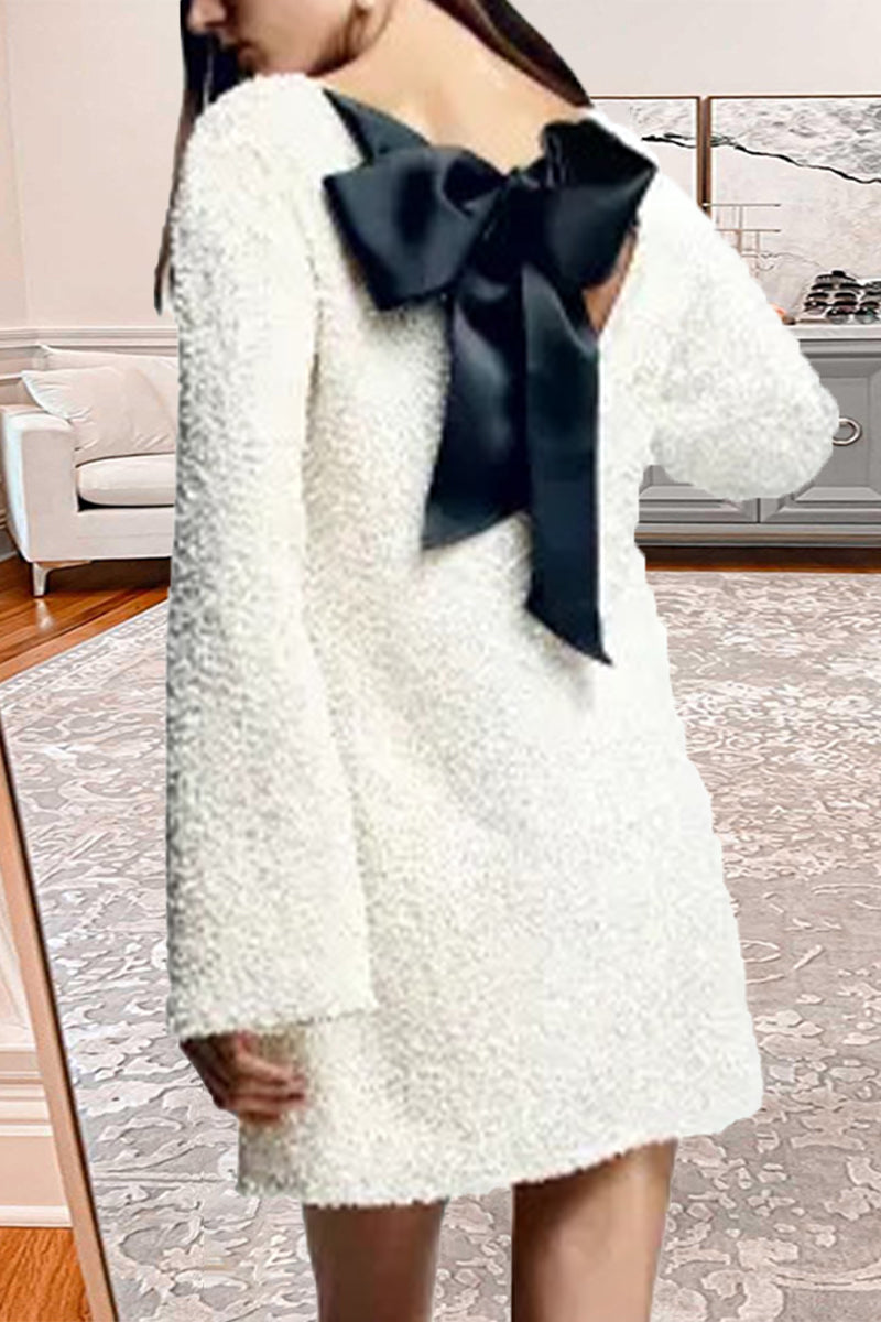 Vestidos de princesa dulces, lisos, con lazo y cuello redondo