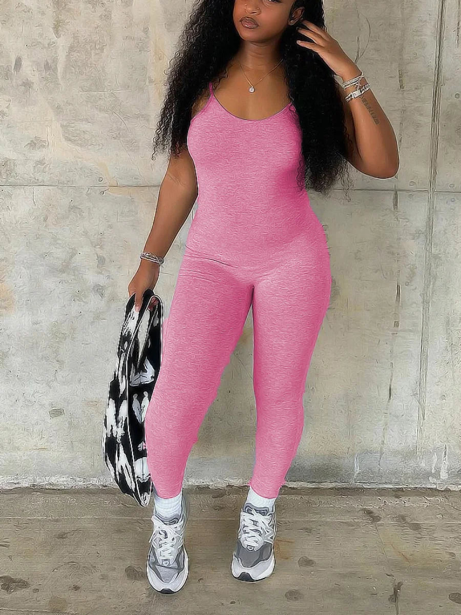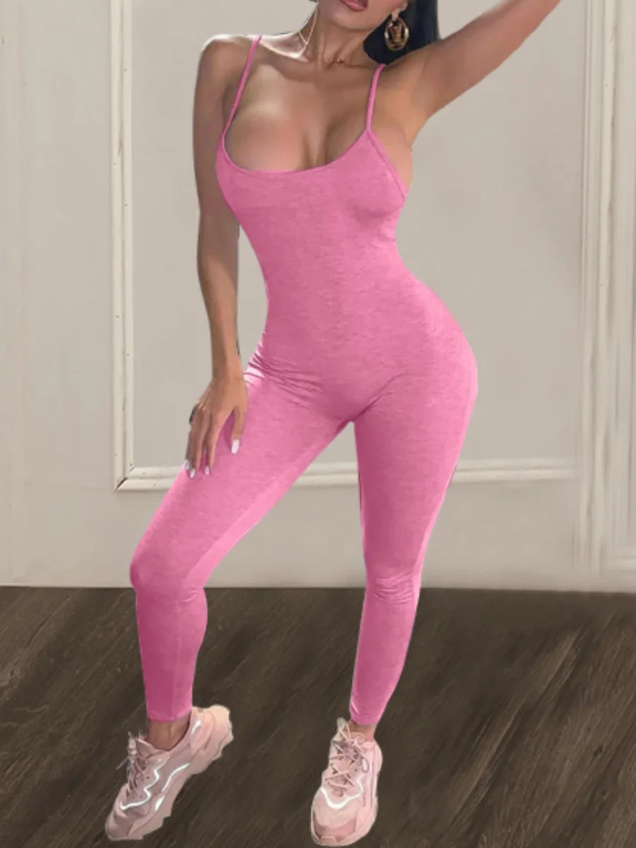 Mono ajustado con tirantes finos, escote en U, sin mangas, liso, ajustado, moldeador, elástico, sencillo, mono largo para mujer.