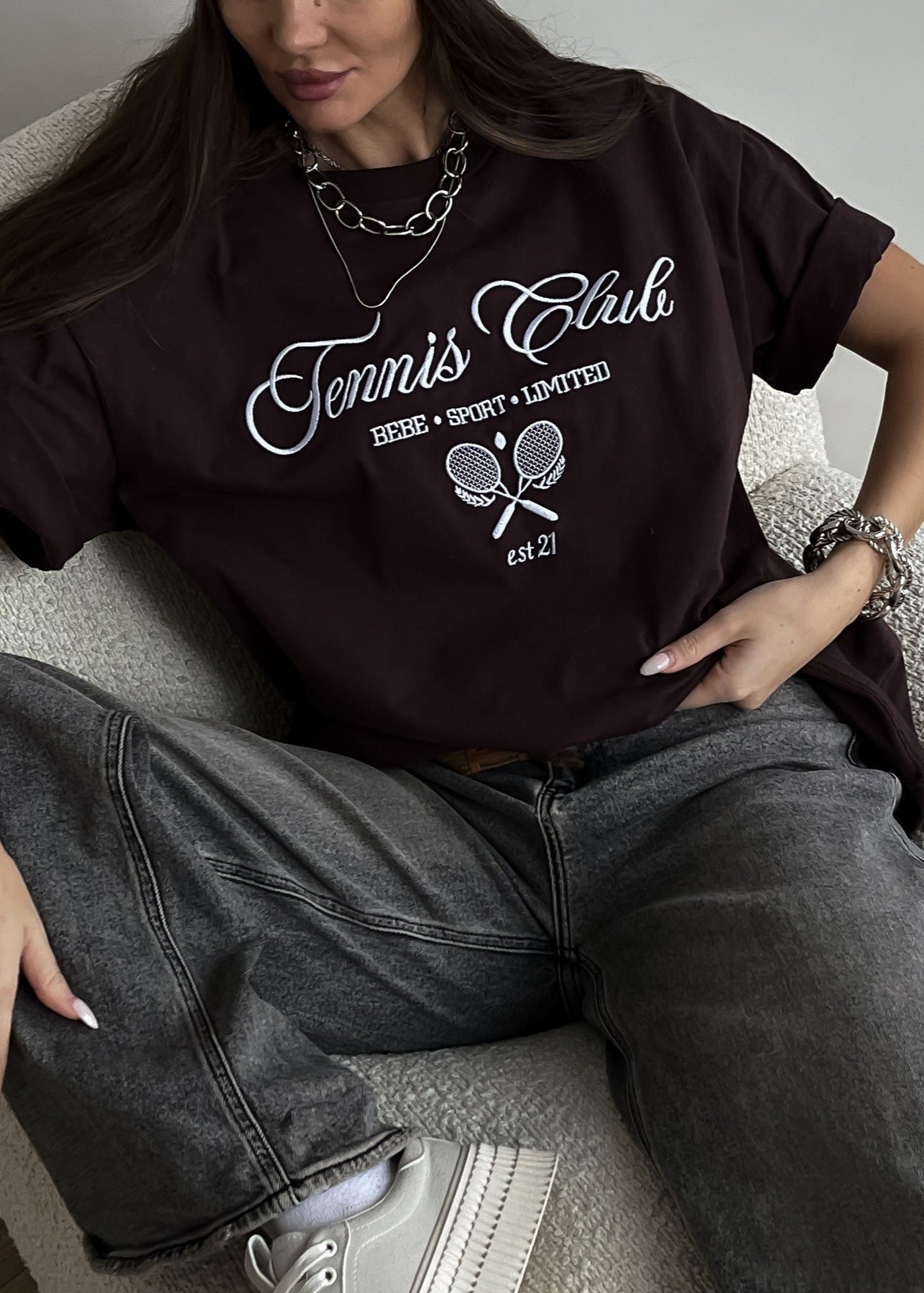 This oversized graphic t-shirt blends sporty aesthetics with casual comfort. Featuring a bold "Tennis Club" print, it offers a relaxed fit and soft fabric that makes it ideal for everyday wear. Whether paiRed with leggings, wide-leg pants, or layeRed over a skirt, this tee delivers an effortlessly cool vibe. Perfect for lounging, running errands, or adding a vintage-inspiRed touch to your streetwear look.