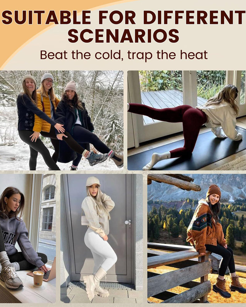 Women's winter tights are made of soft, stretchy, lightweight material, comfortable, and breathable. You can wear them all day without any discomfort. Thick Fleece Lining—Women's Winter Thermal Tights keep you warm without looking bulky, keeping you slim and warm.