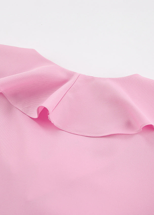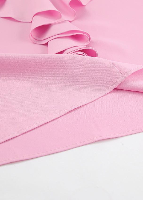 Valencia - Ruffled Halter Blouse is a statement piece designed for bold femininity. Featuring cascading ruffles along the V-neckline and a chic halter strap detail, this blouse creates a romantic yet sophisticated silhouette. The long sleeves with flaRed cuffs add a touch of elegance, while the soft, flowing fabric ensures comfort and movement. Perfect for pairing with high-waisted denim or a sleek skirt, this blouse effortlessly transitions from day to night.