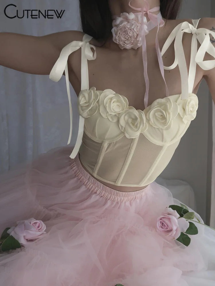 Camisola sin mangas con tirantes y encaje de flores para mujer, estilo informal, estilo Spice Girl, ropa de calle