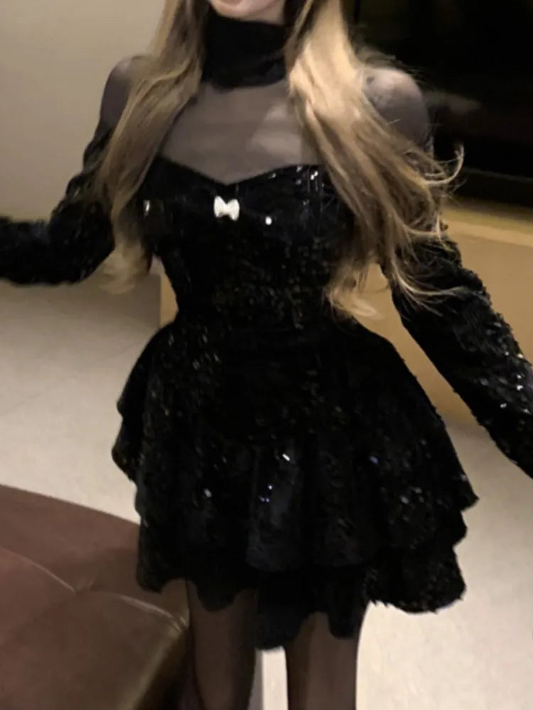Vestido elegante informal de corte A para mujer, color negro, estilo vintage de terciopelo, a la moda, para fiestas, noches y Navidad