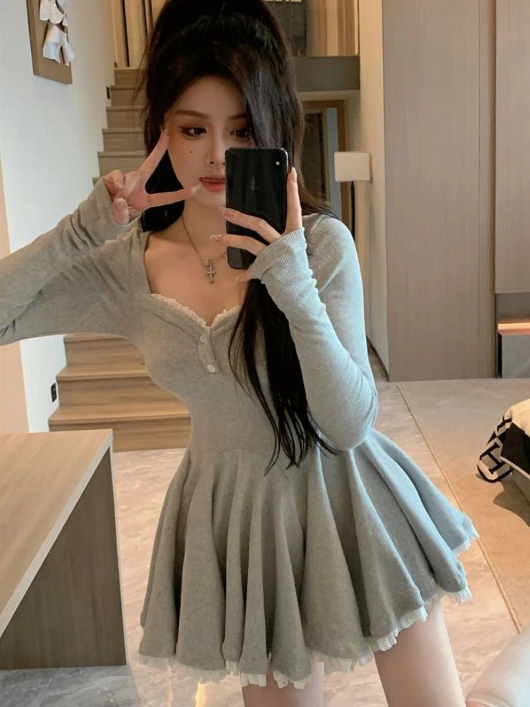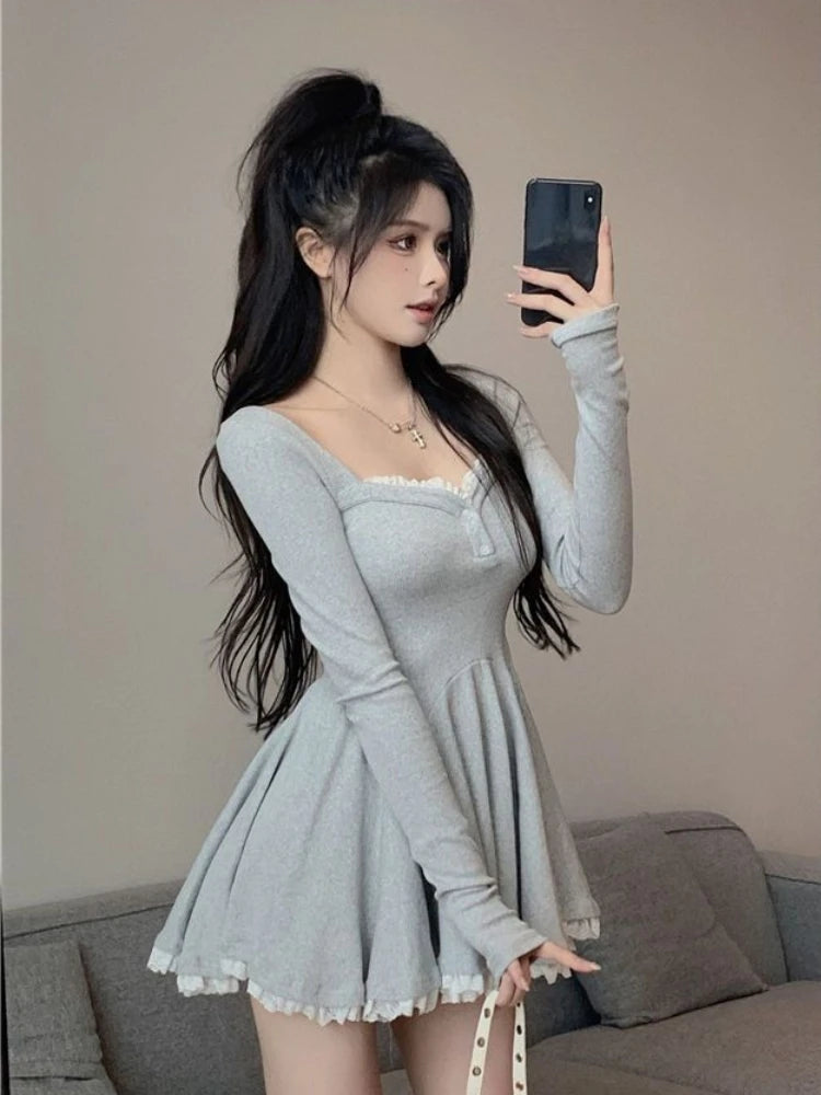 Vestido mini Y2K de moda para mujer, otoño primavera, nuevo, elegante, ajustado, sexy, ropa para mujer