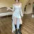 Vestido de fiesta de noche irregular Y2K de malla de manga larga con cuello cuadrado y volantes, corte en A, sexy, moda coreana