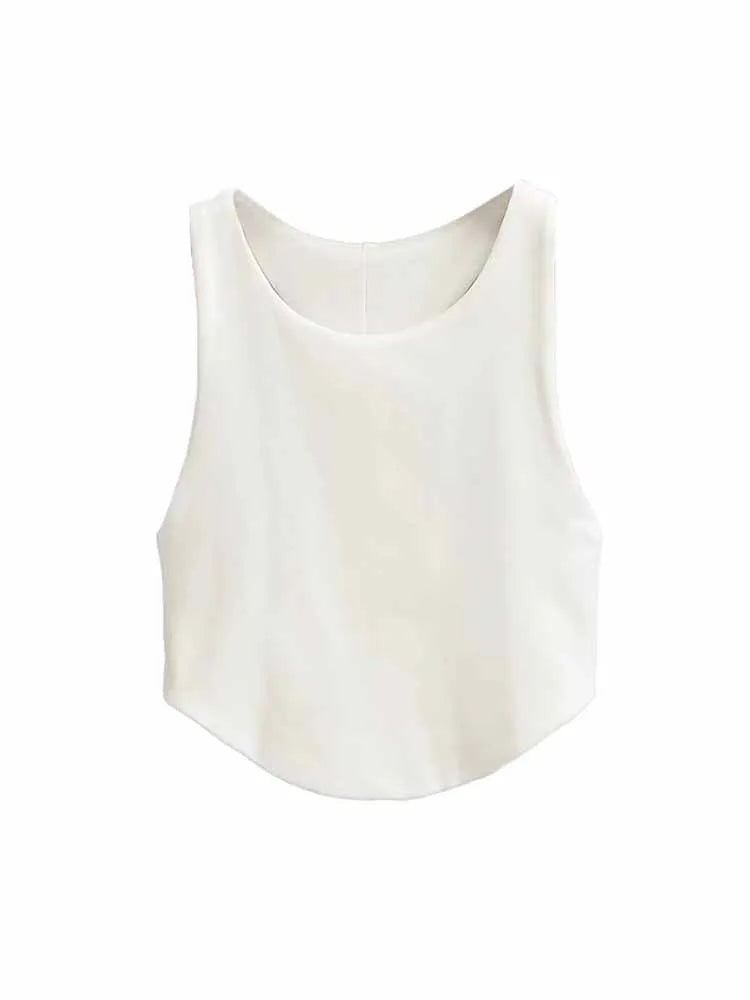 2025 Summer Women’s Sexy Double Curved Crop Tops Narrow Shoulder Sleeveless Backless Tight Tank Top