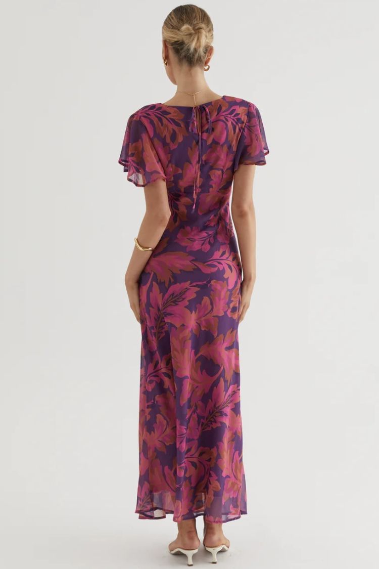 Abstract Print Short Sleeve Belted Wrap Midi Dress