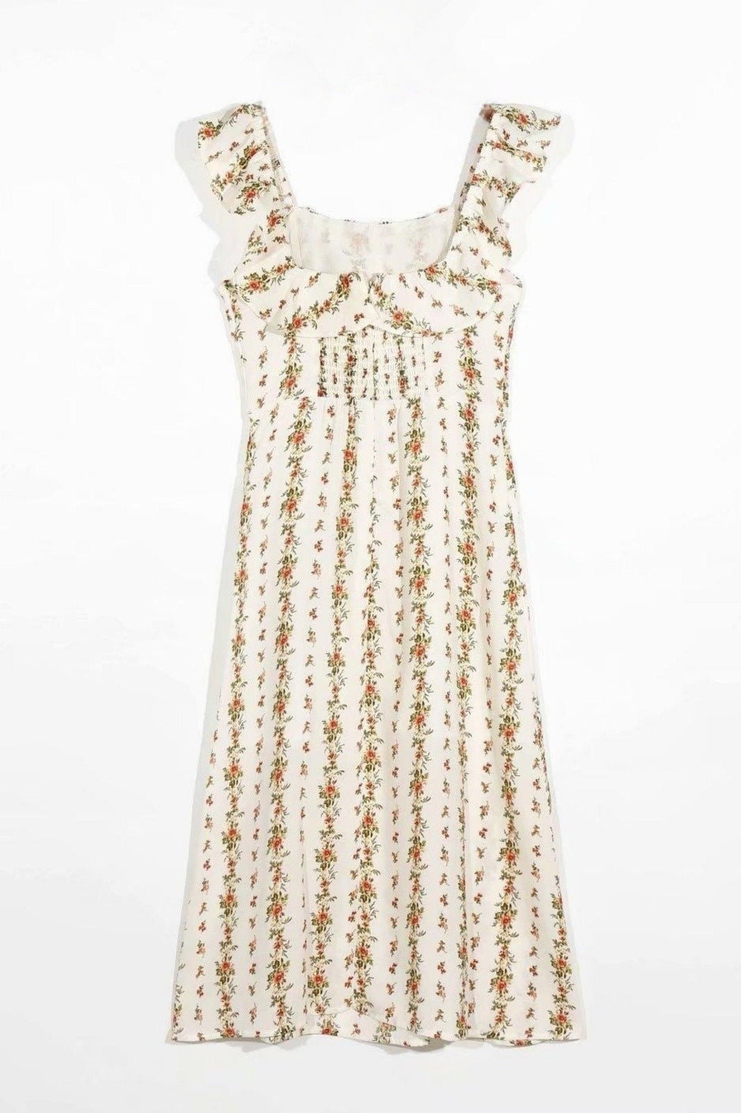 Alyss Printed Ruffle Strap Slit Midi Dress