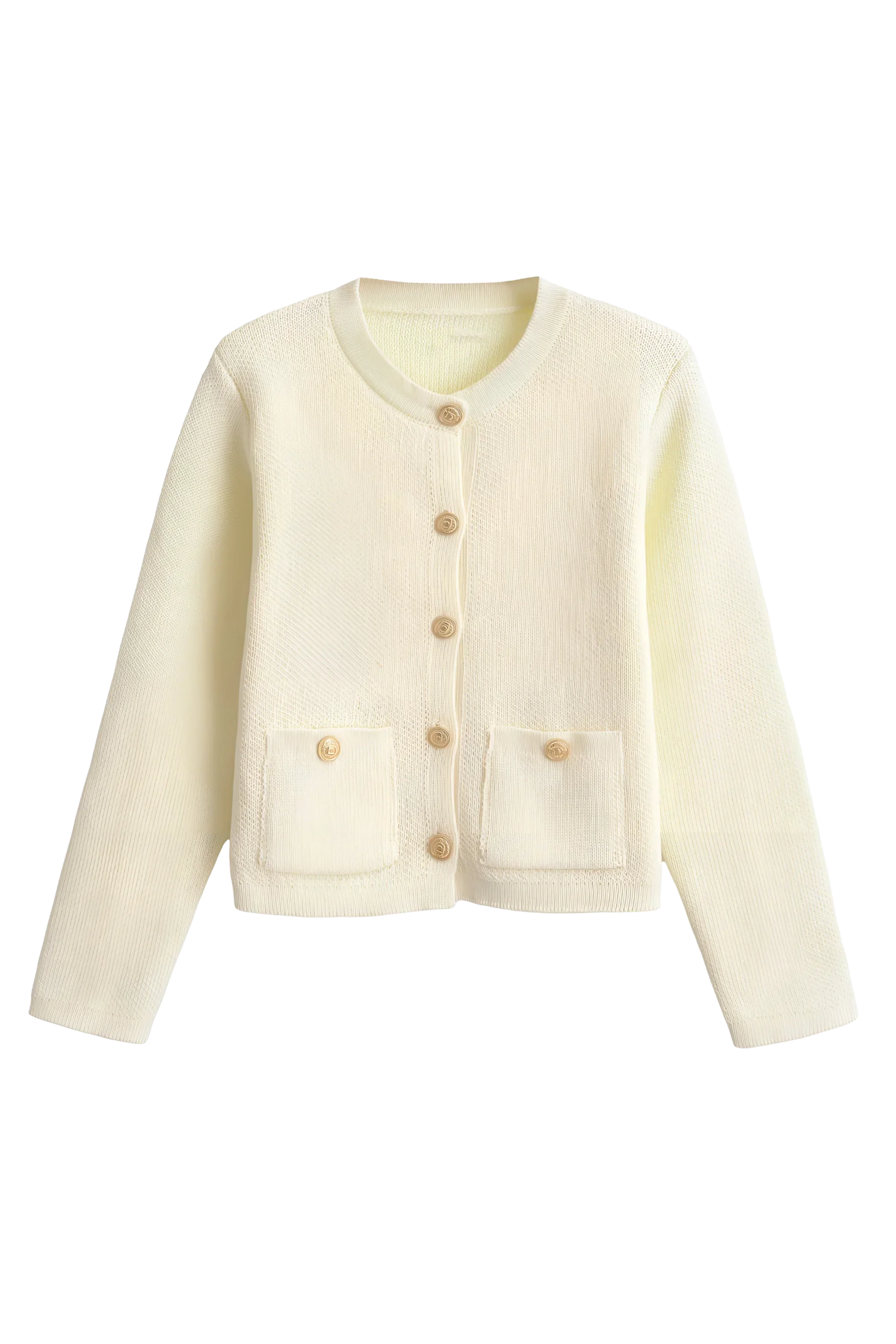 Discover timeless sophistication with our knit cardigan, designed in a chic Chanel-inspired style. This elegant sweater features a classic round neckline and a single row of buttons, blending traditional charm with modern flair.