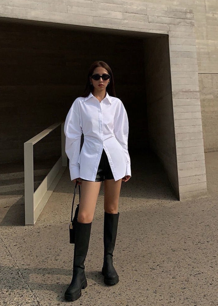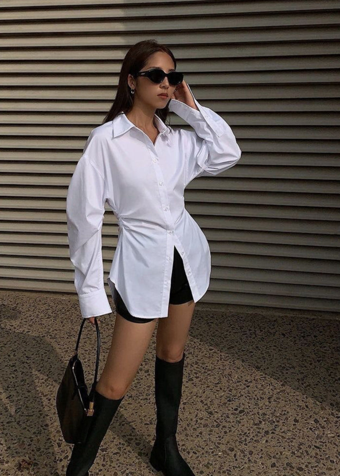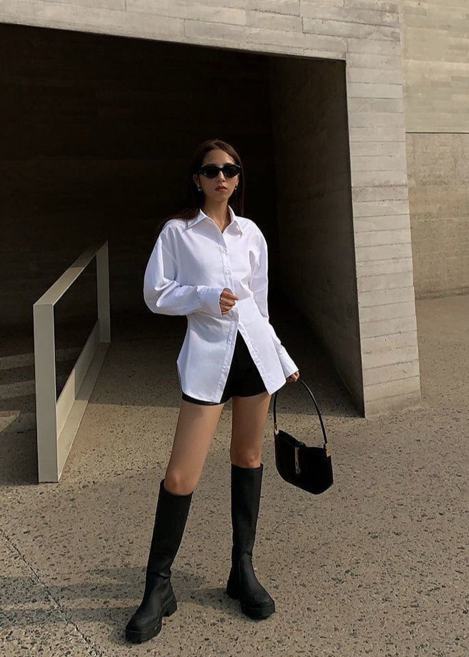Crafted to maintain its structure while offering flexibility, this longline shirt moves with you throughout the day. Pair it with biker shorts for a street-chic look or wear it layered over sleek trousers for a more polished vibe.