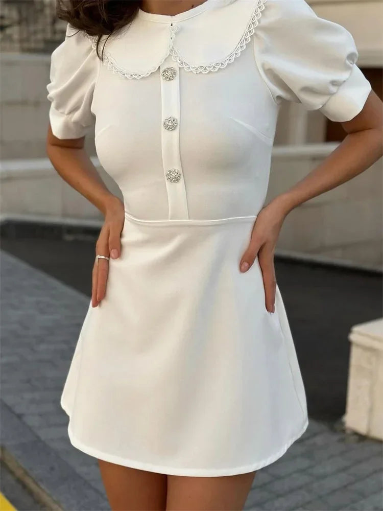 Autumn Fashion Glitter Mini Dress Elegant Patchwork Short Sleeve Lace-Up Lace Casual Party Dress Women’s Bandage Dress New