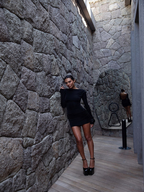 Autumn Long Sleeve Tight Dress For Women Sexy Backless Bodycon Mini Dress Fold Female Party Club Evening Dress