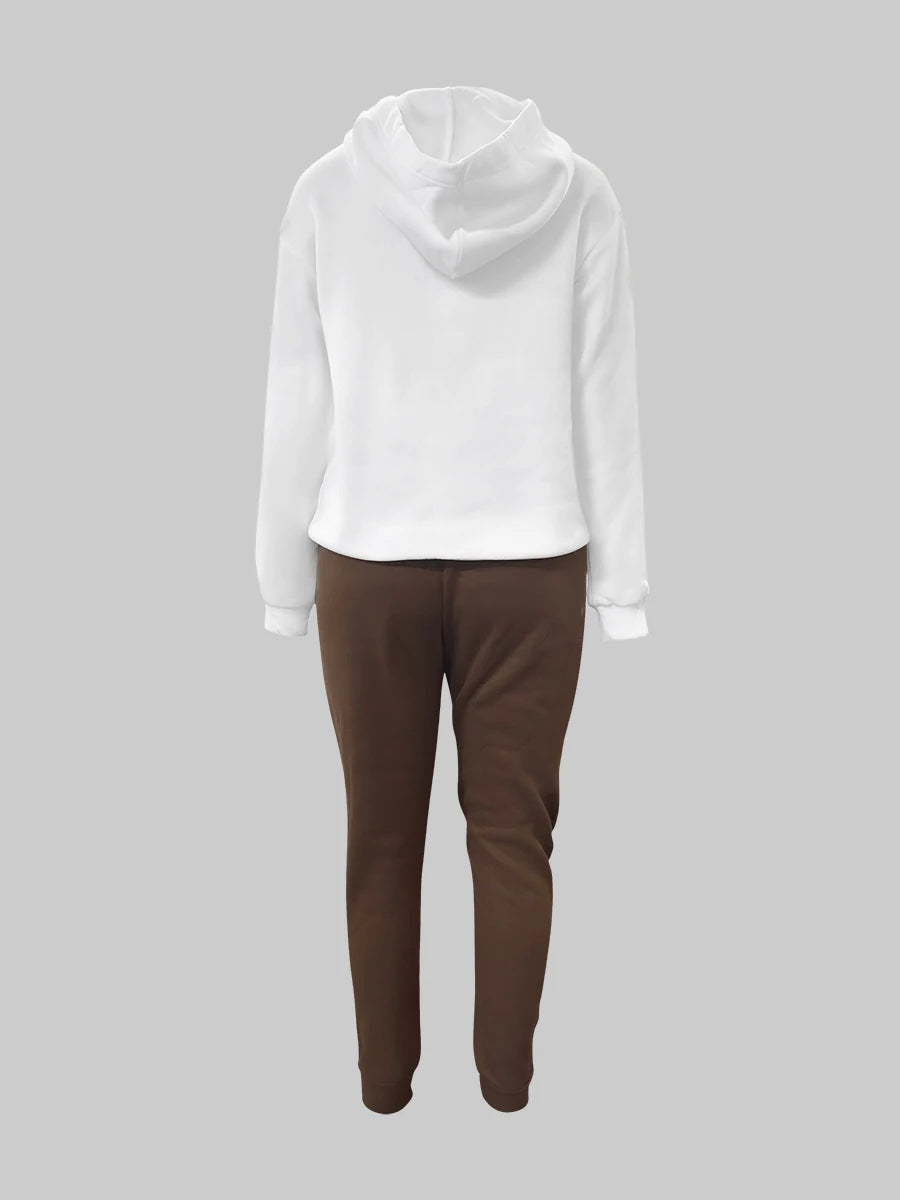 Autumn Winter 2pcs Set Letter Print Pocket Tracksuit Set Women Sportwear Fleece Hoodies Pullover Sweatshirts Pants Outfits