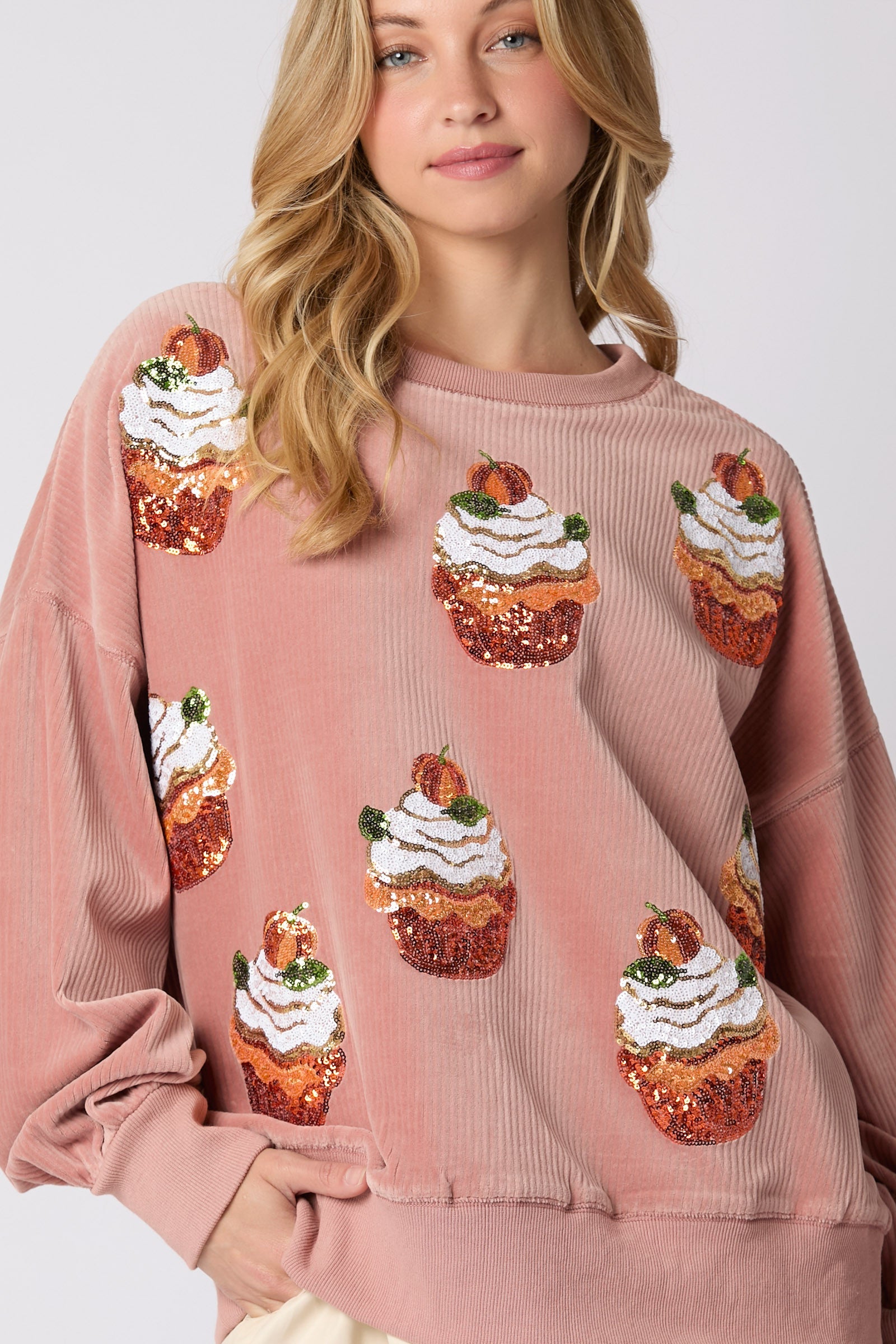 Autumn Winter Christmas Pumpkin Cake Sequ round Neck Loose Pullover Sweatshirt