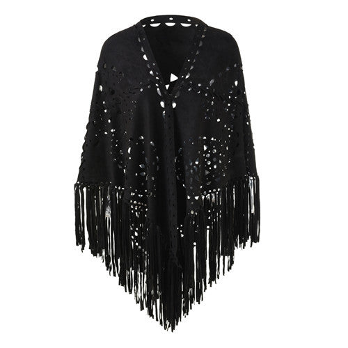 Autumn Winter Warm Shawl Personalized Suede Cloak Robe Hollow Out Cutout Tassel Scarf Women Gift High Sense