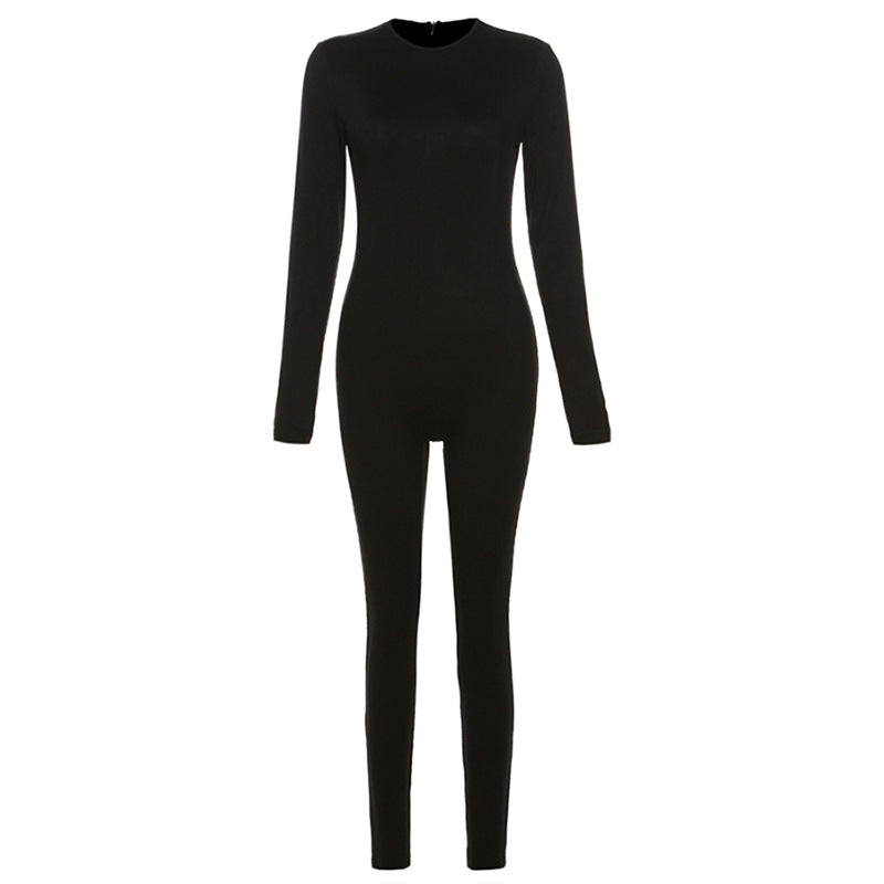 Autumn Winter Women Clothing Solid Color High Waist Tight Sports Fitness Jumpsuit