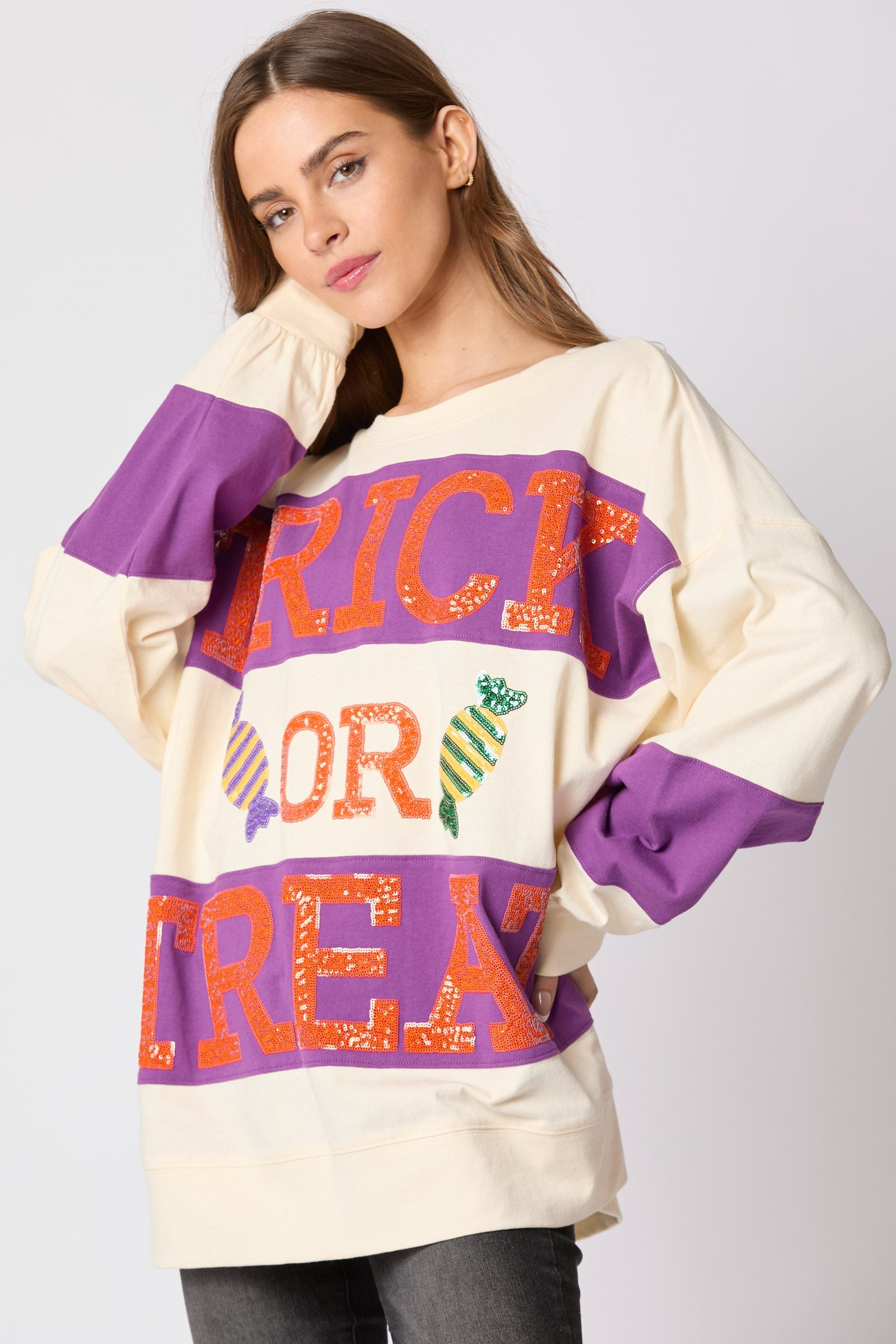 Autumn Winter Women Halloween Alphabet Sequ Multicolor Hoodie Casual Top for Women